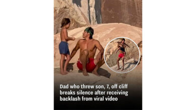 Father who threw his 7-year-old son off cliff has broken his silence following the outrage sparked by viral video